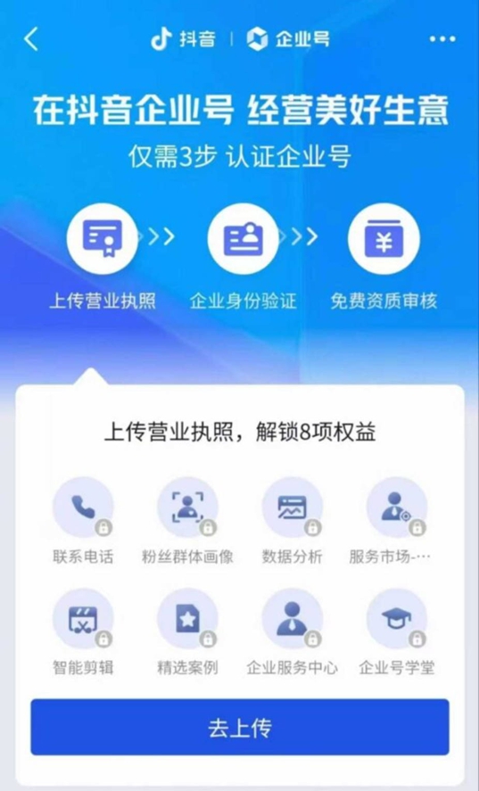 目前唯一可行的路径是通过抖音来客App完成旧版蓝V认证。具体步骤如下: